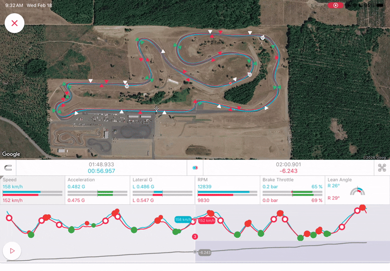 You can overlay your own data directly against mine inside the app and compare line choice, braking zones, throttle pickup, and corner exit. The results might surprise you!